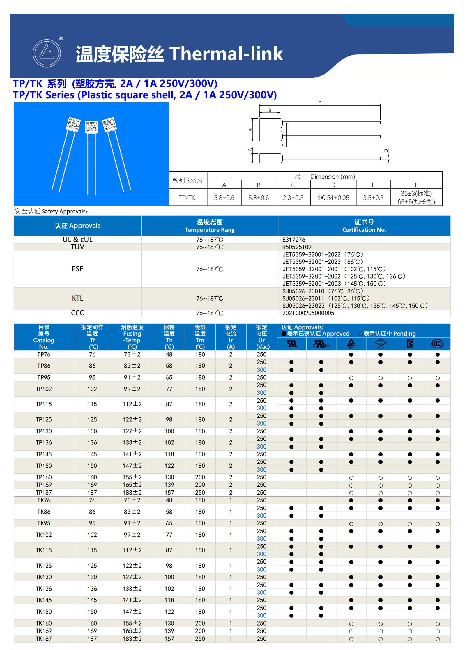 型号:TP/TK 温度保险丝