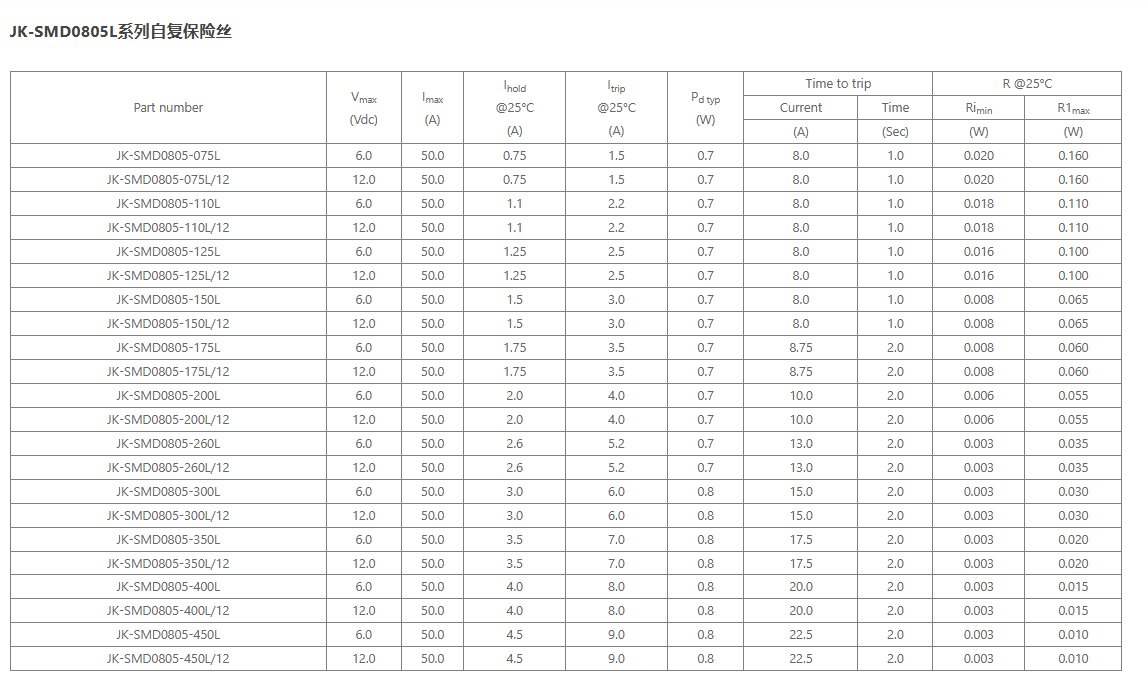 首页 产品展示 自恢复保险丝 SMD0805L系列自复保险丝