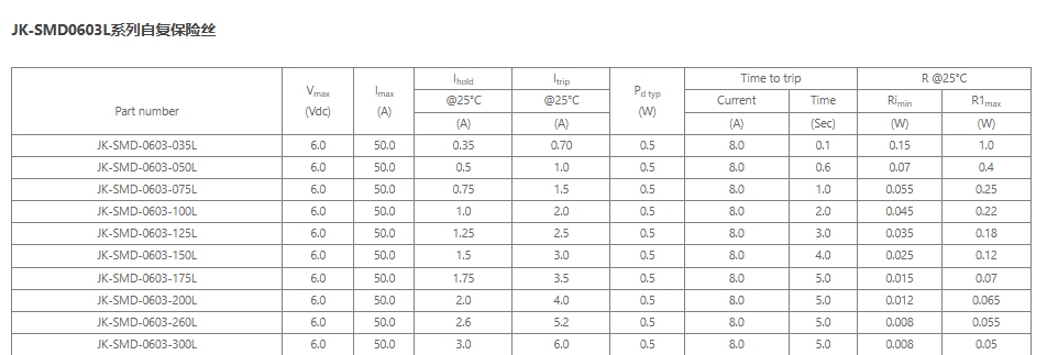 SMD0603L系列自恢复保险丝