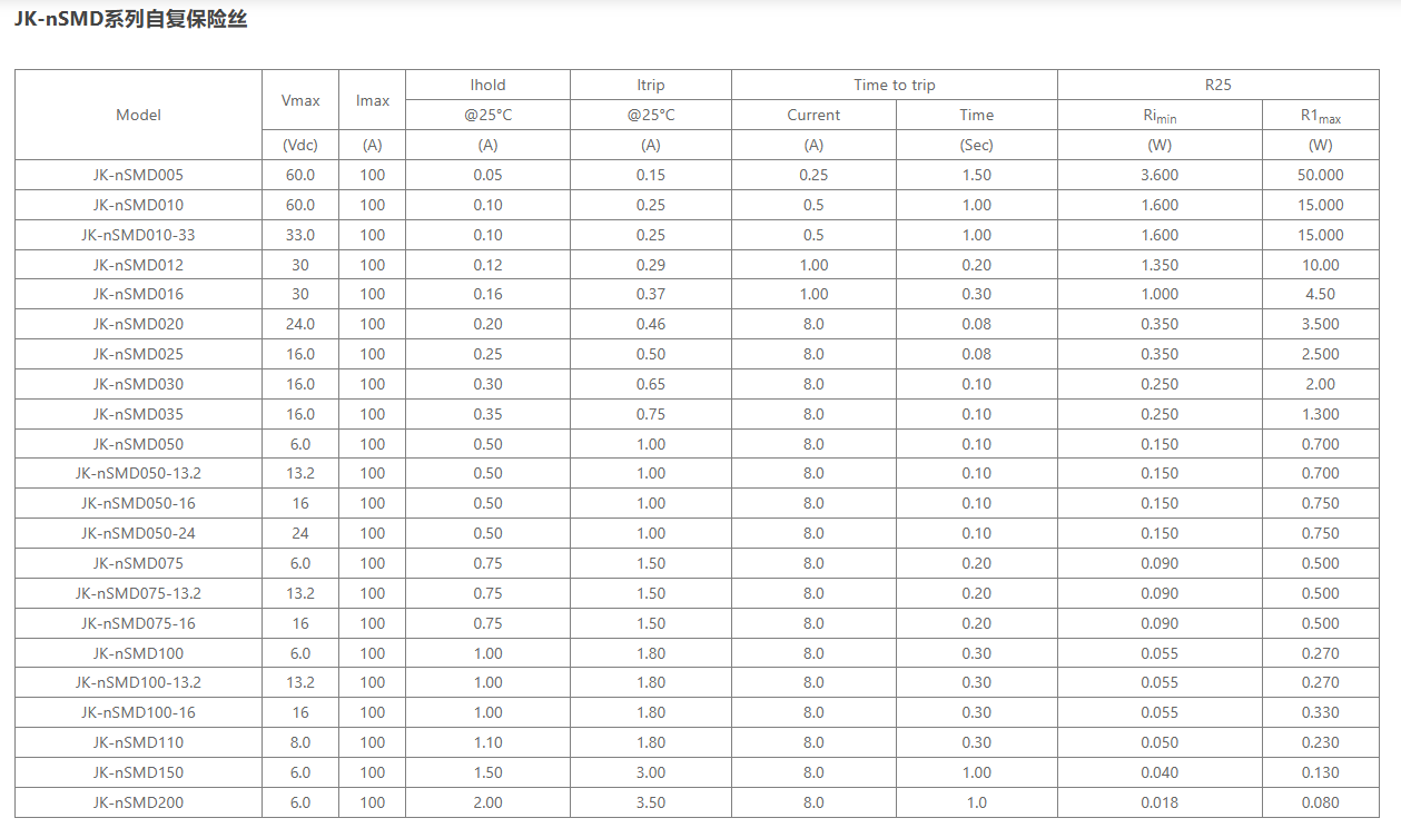 首页 产品展示 自恢复保险丝 nSMD1206系列自复保险丝
