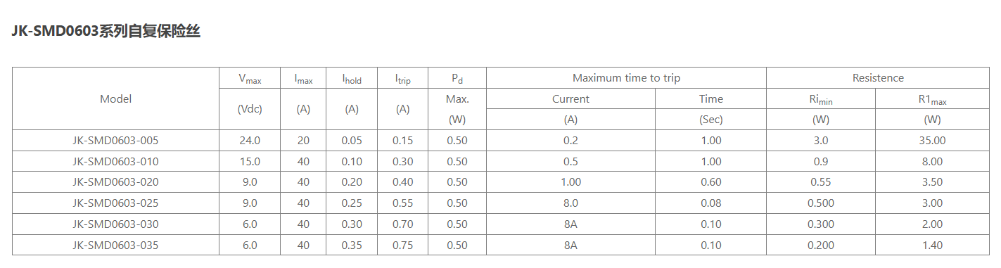 首页 产品展示 自恢复保险丝 SMD0603系列自复保险丝