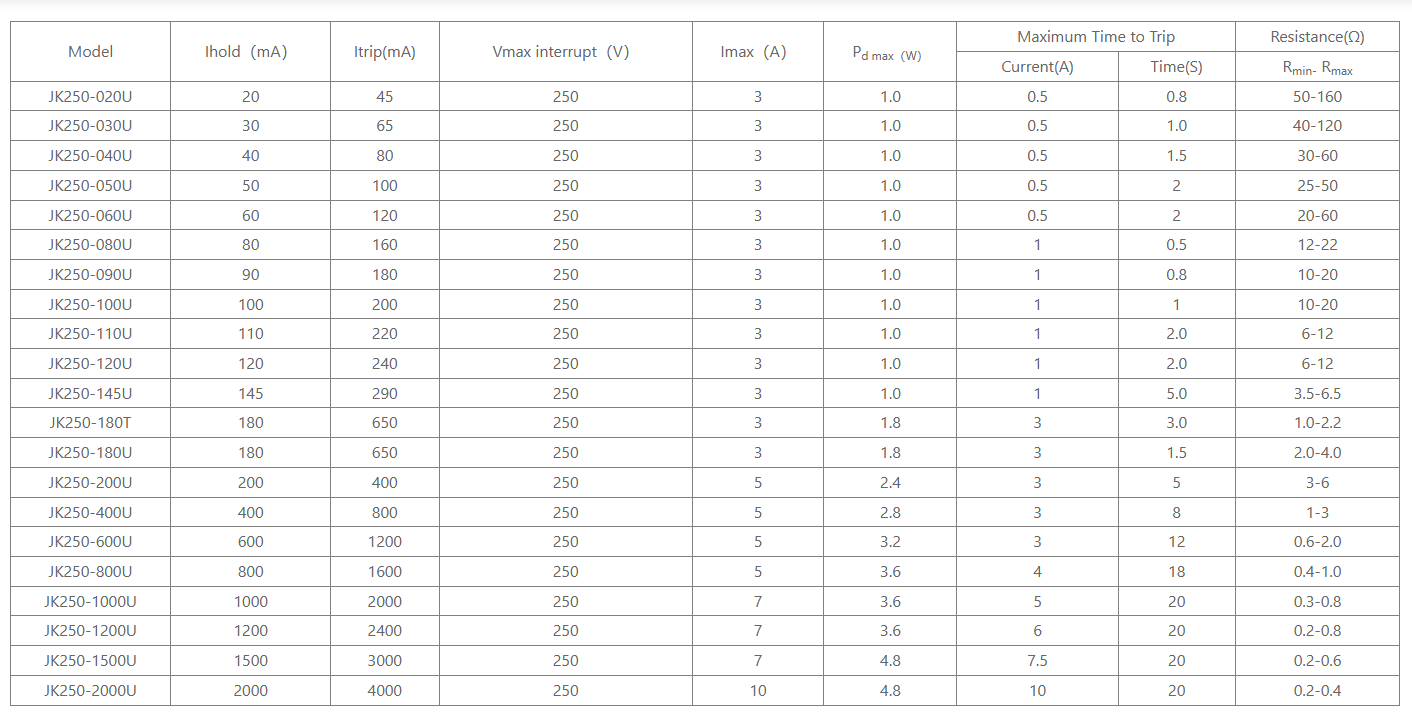 型号:250系列自复保险丝
