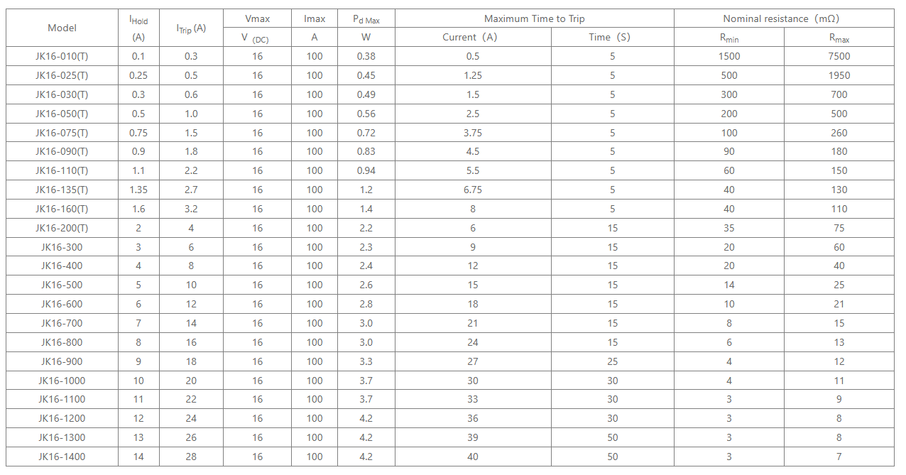 首页 产品展示 自恢复保险丝 16系列自复保险丝