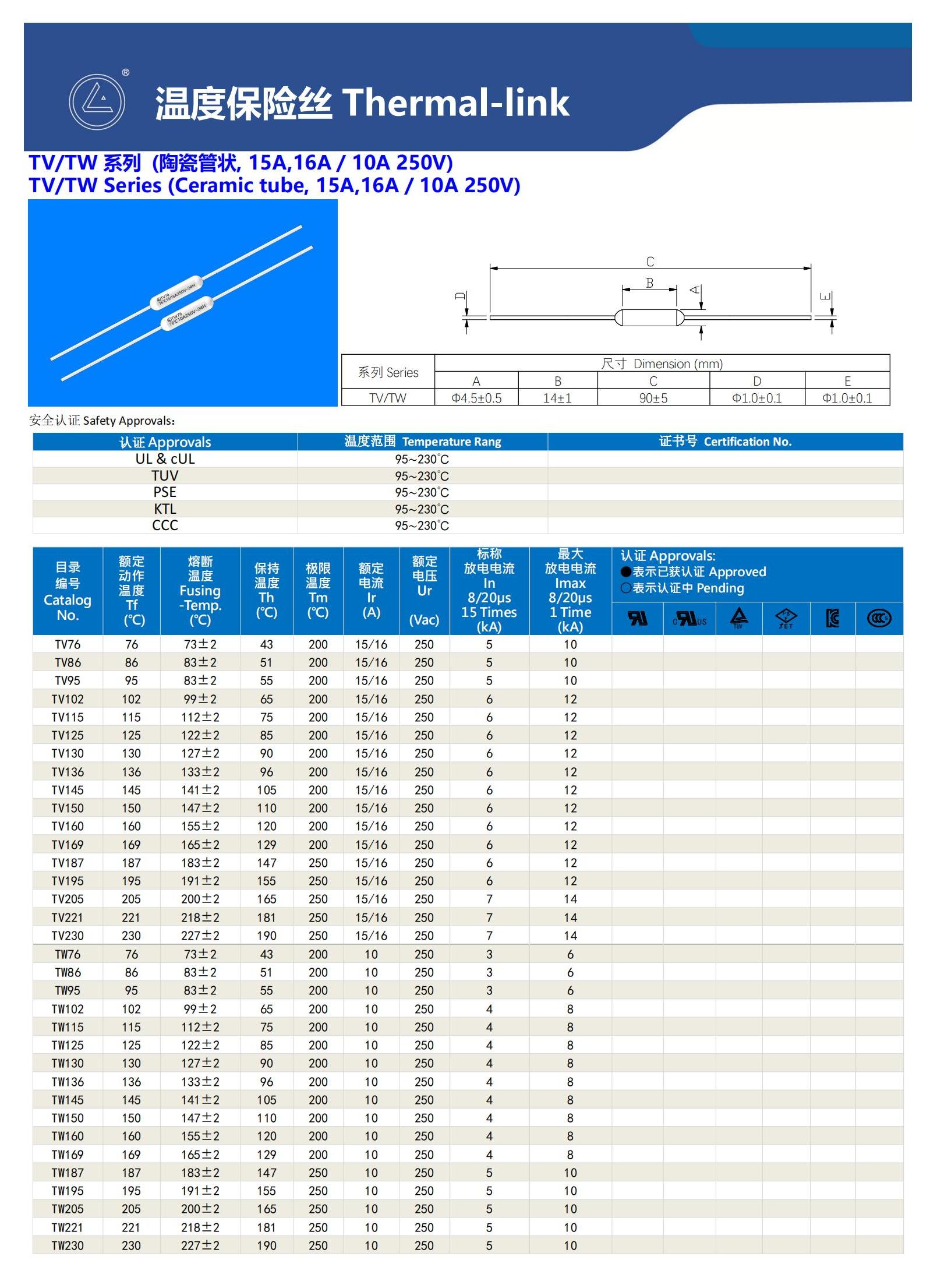 首页 产品展示 过温保护元件 TV/TW Φ4.5x14