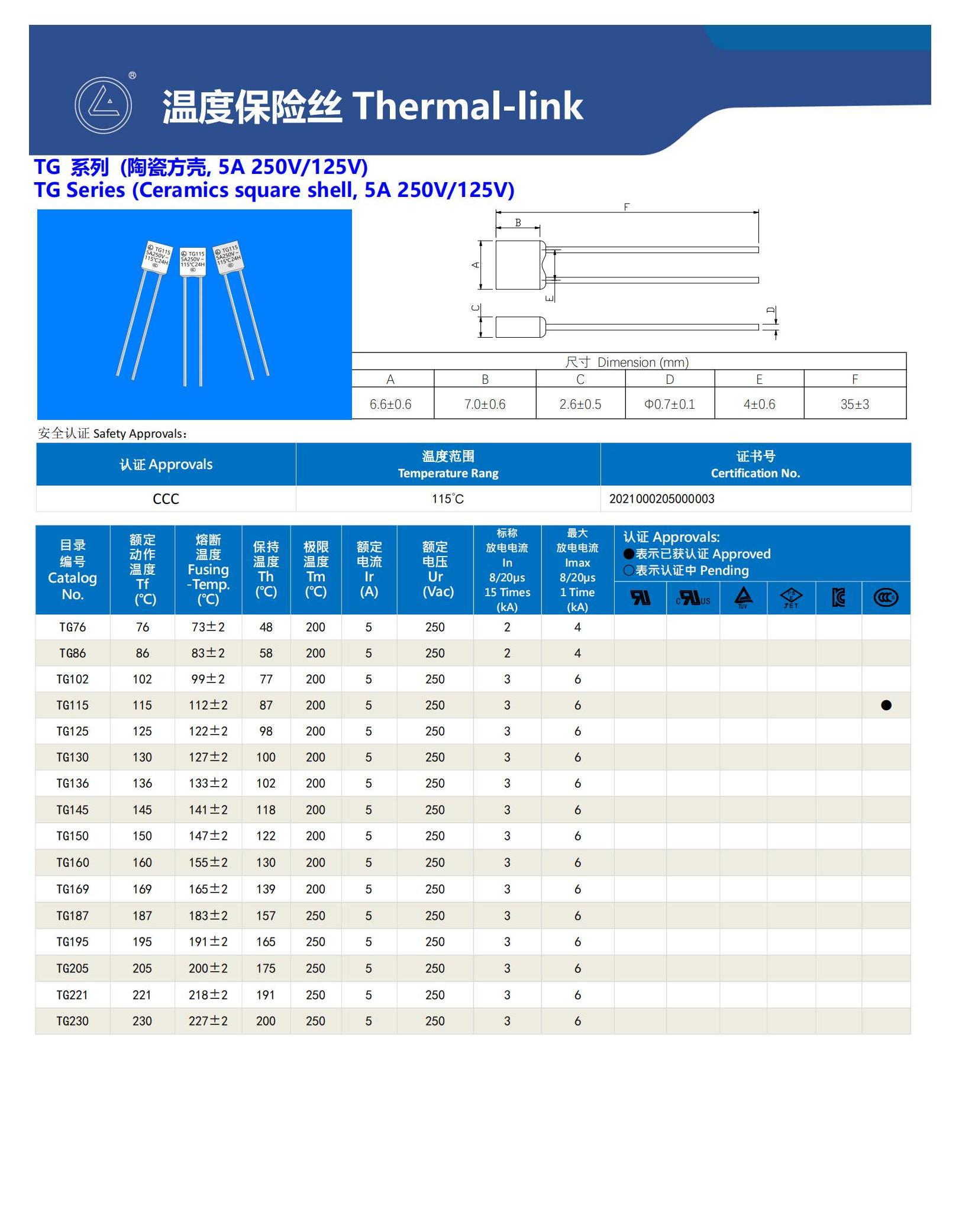 首页 产品展示 过温保护元件 TG 6.6X2.6X7