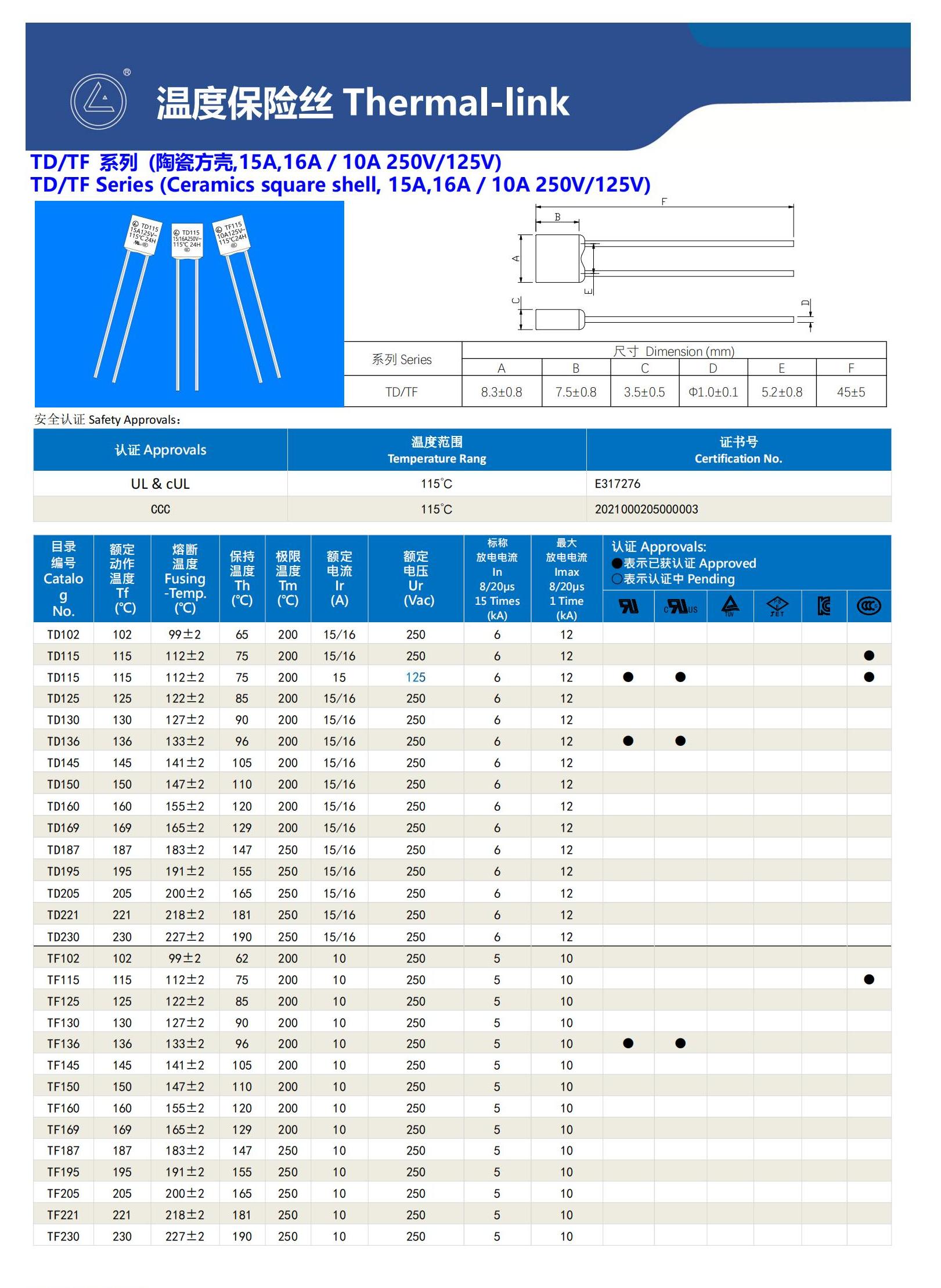 首页 产品展示 过温保护元件 TD/TF 8.3x3.5x8.5
