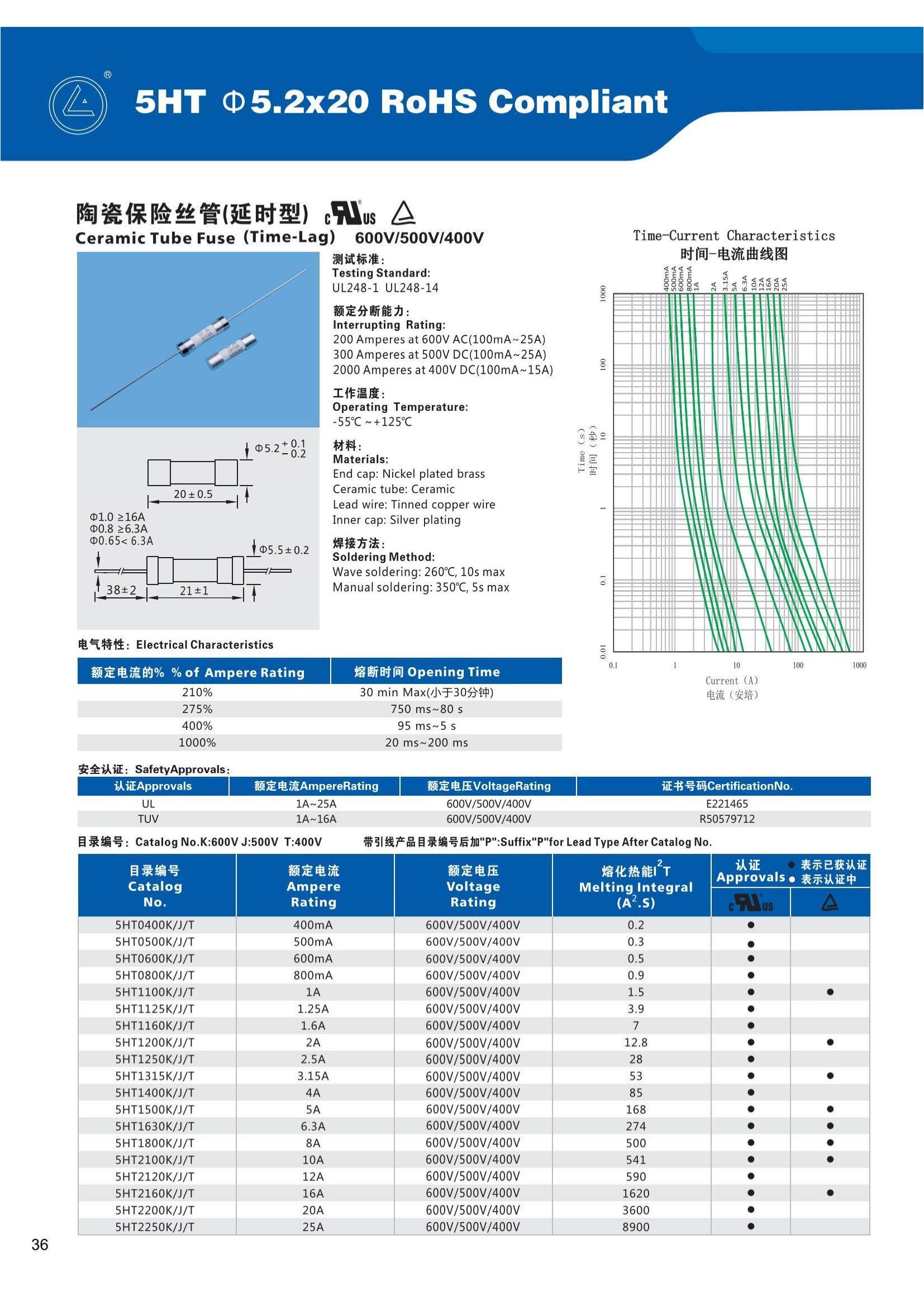 首页 产品展示 过流保护元件 5HT Φ5.2×20
