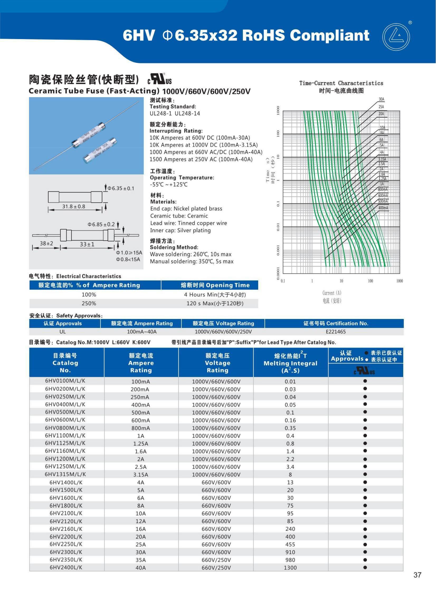 型号:6HV 陶瓷管保险丝