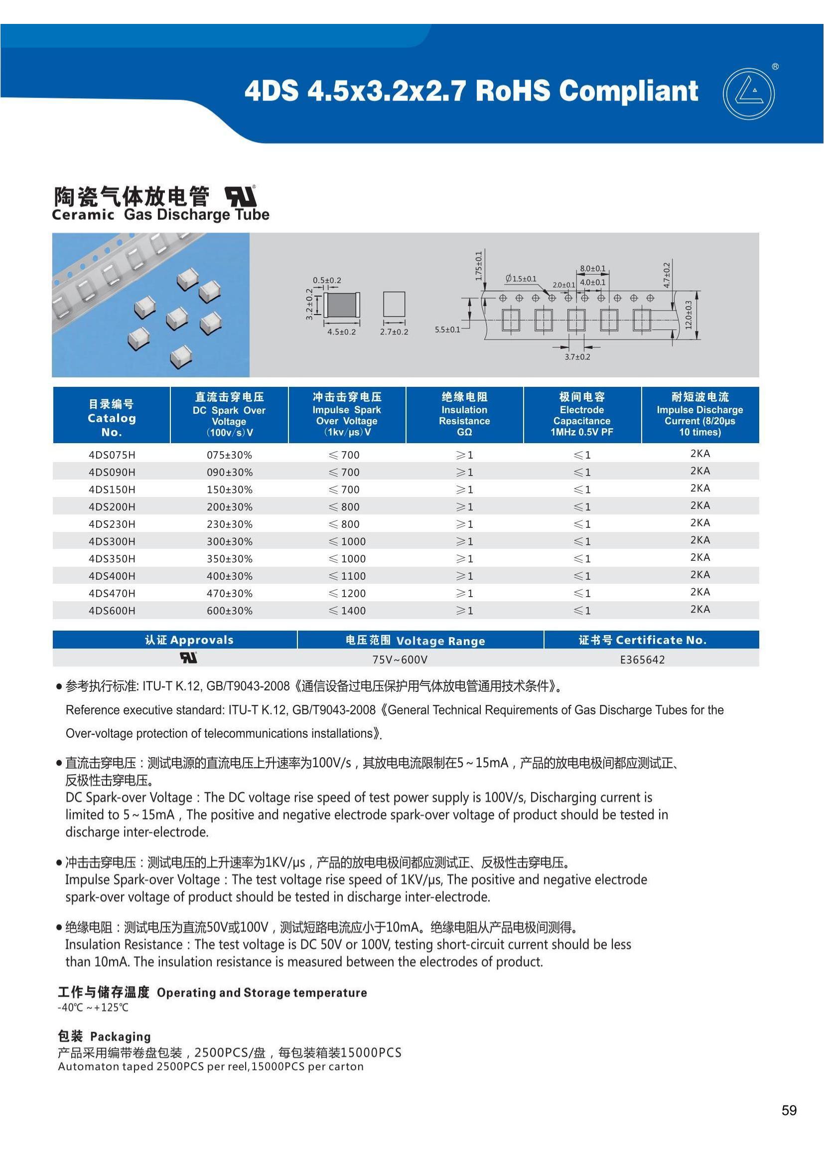 首页 产品展示 气体放电管 4DS 4.5x3.2x2.7