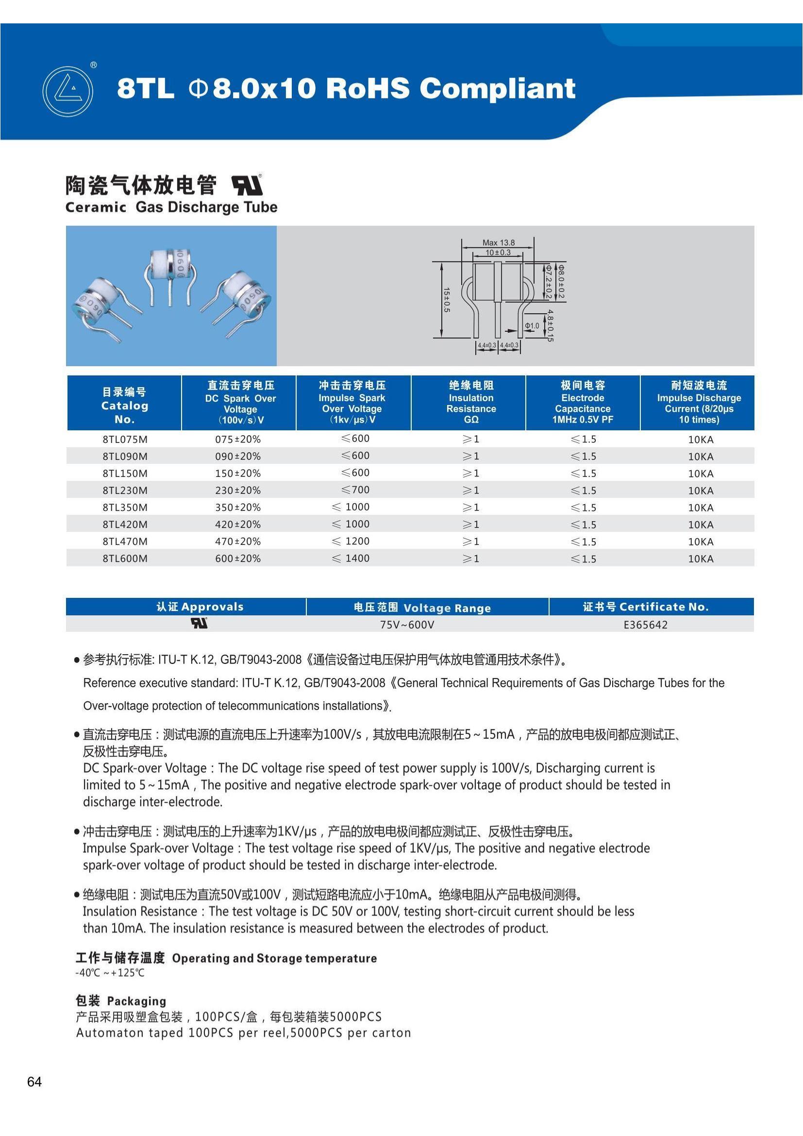 首页 产品展示 气体放电管 8TL Φ8.0x10