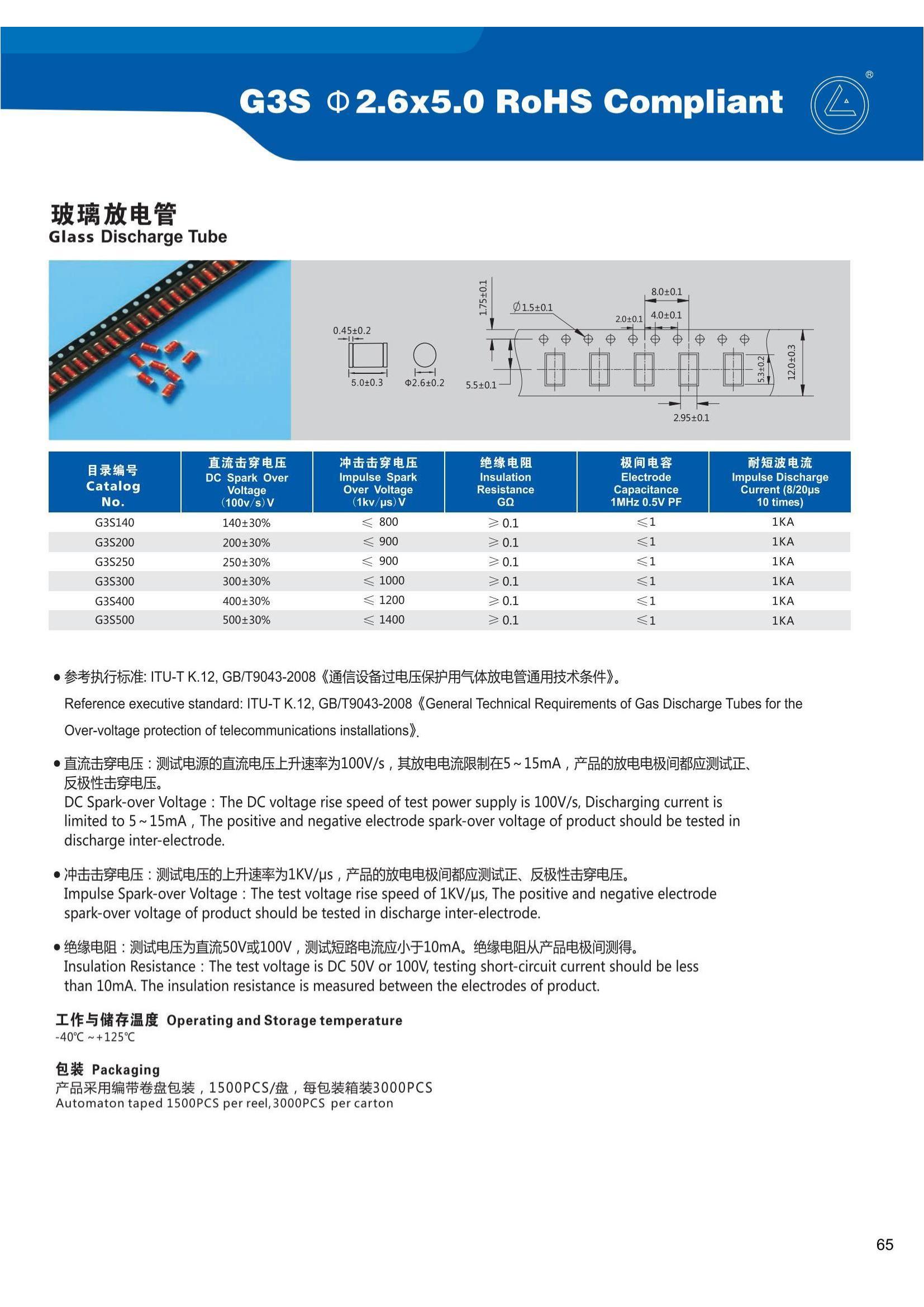首页 产品展示 气体放电管 G3S Φ2.6x5.0