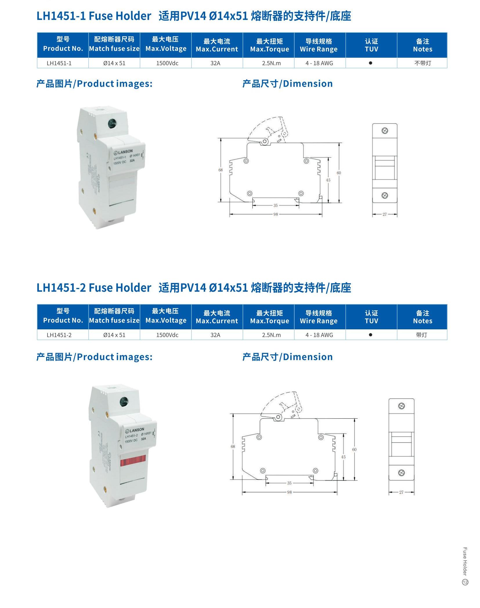 型号:LH1451-1光伏熔断器座