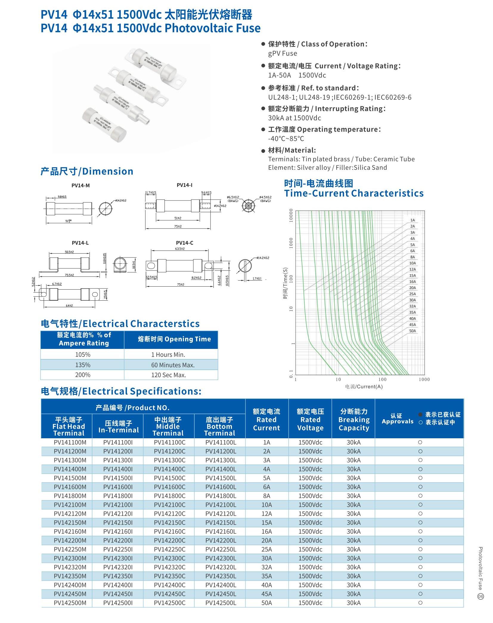 首页 产品展示 新能源熔断器 PV14 Ф14x51