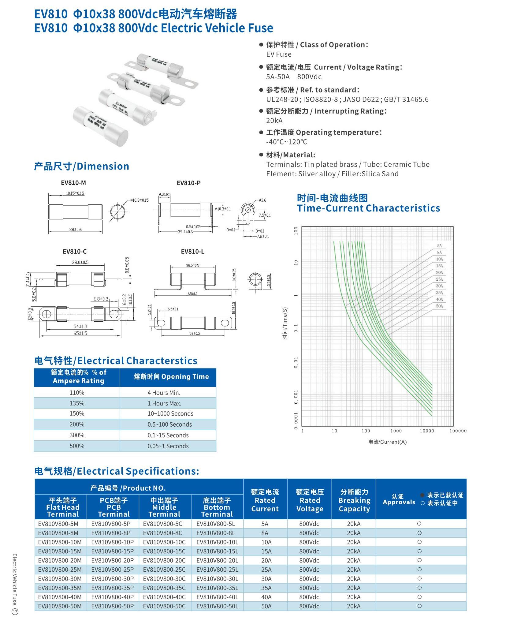 型号:EV810电动汽车熔断器
