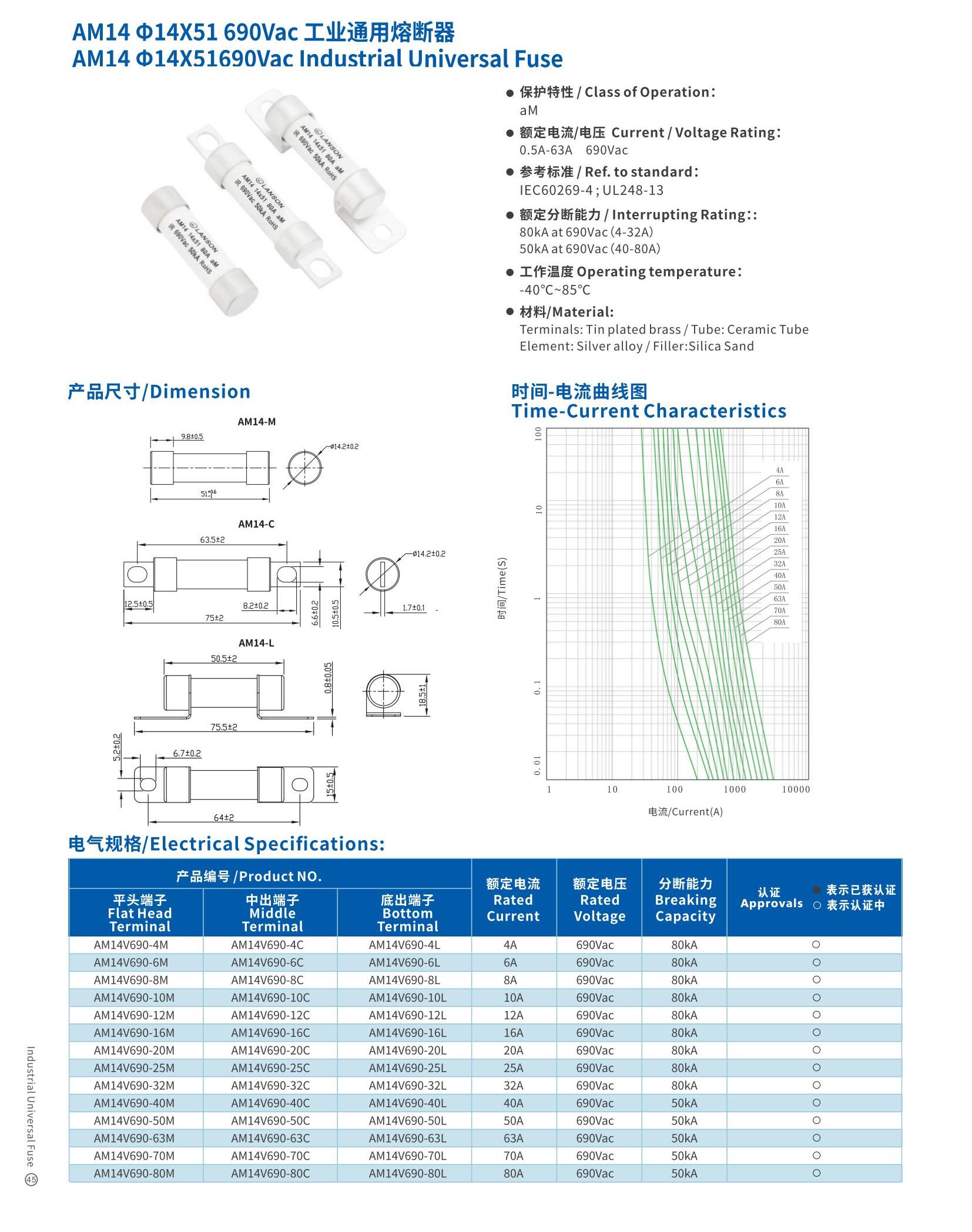 首页 产品展示 新能源熔断器 AM14 Ф14X51