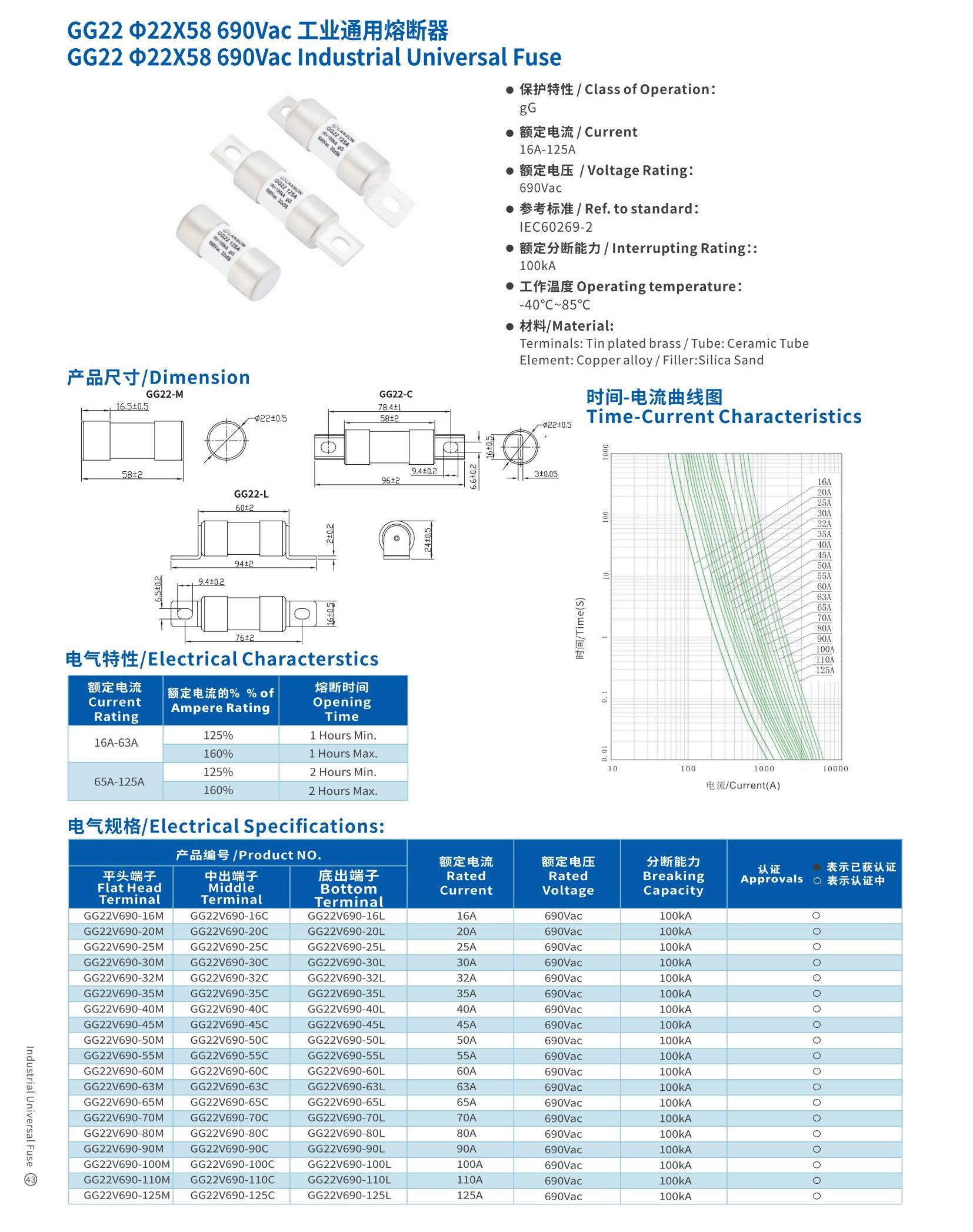 首页 产品展示 新能源熔断器 GG22 Ф22X58